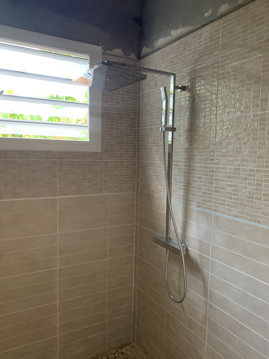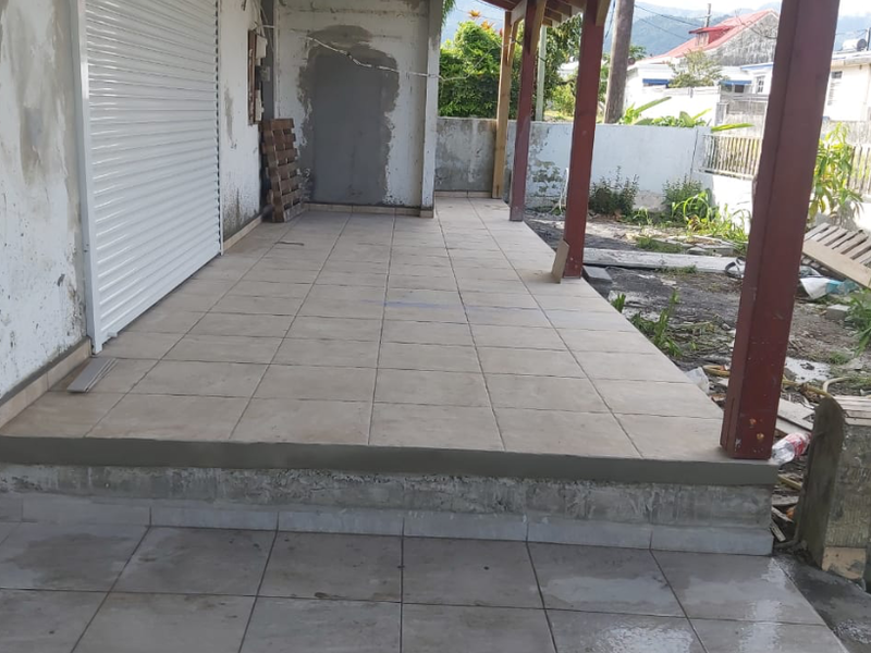 Pour ce projet de Capesterre, nous avons posé le carrelage dans la plupart des pièces de cette habitation, ainsi qu'à l'extérieur, en terrasse.